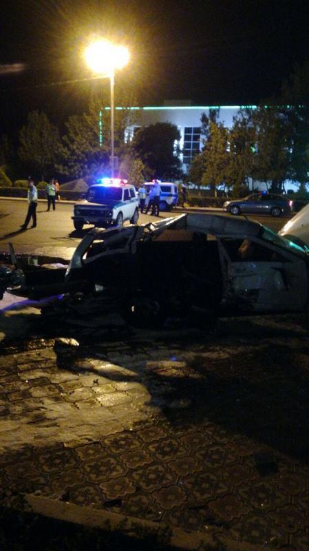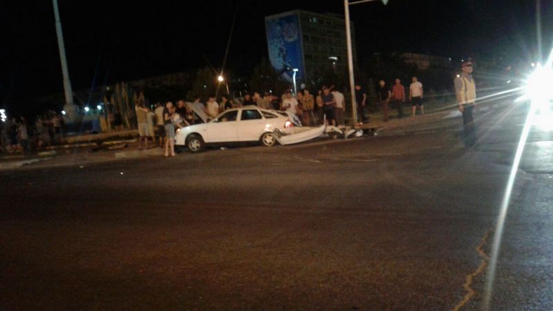 В ночь с 22 на 23 июля на перекрестке перед акиматом Мангистауской области столкнулись две машины.