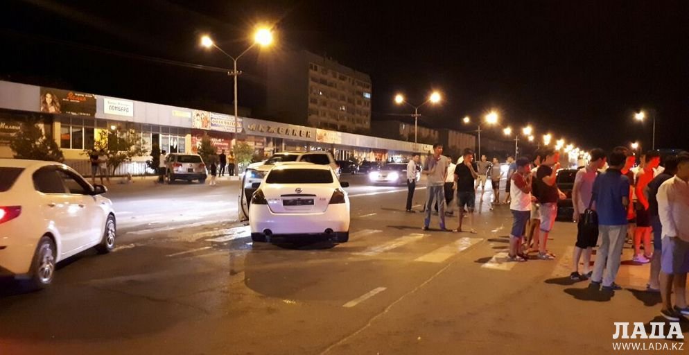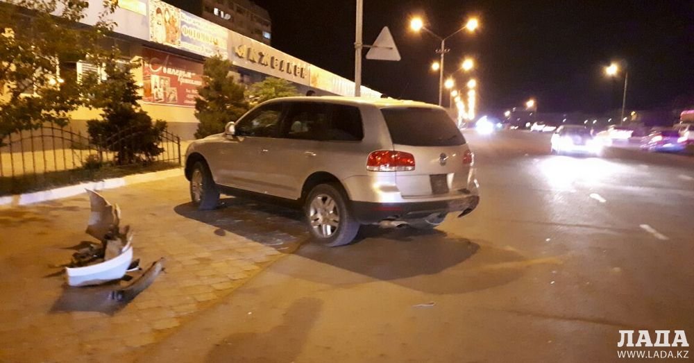 ДТП произошло у пешеходного перехода между 28 и 29 микрорайонами, напротив ТЦ «Акмаржан». Столкнулись Nissan Altima и Volkswagen Touareg.