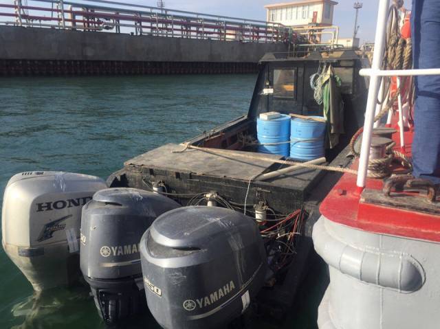 Маломерное плавательное средство типа Байда с тремя моторами, на котором находились трое граждан Азербайджана, было обнаружено в казахстанском секторе Каспия экипажем пограничного катера «Нурлы Жол». На требование остановиться, нарушители не реагировали. Более того, около часа они пытались оторваться от пограничного катера.