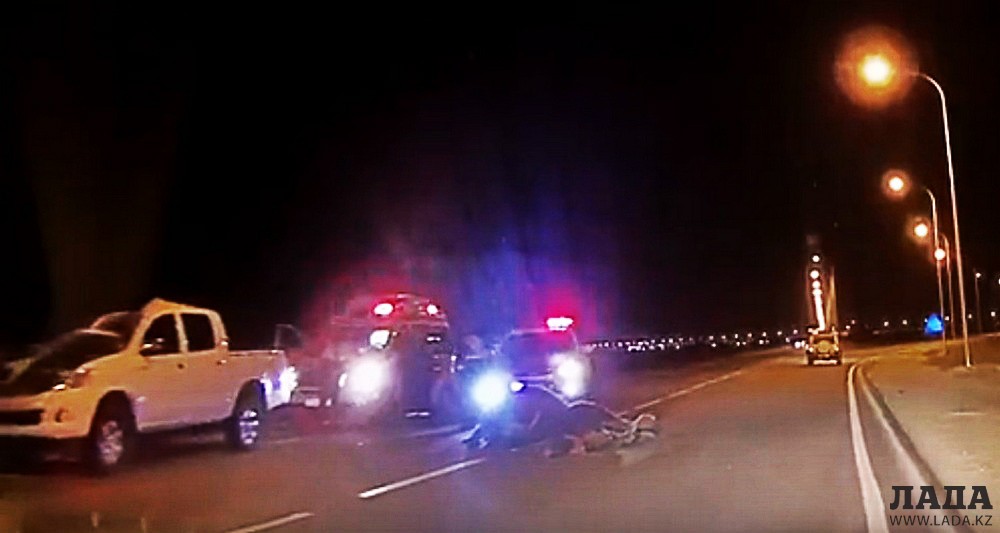 Автомобиль Toyota Hilux сбил верблюда. Информация о происшествии на пульт дежурного скорой помощи поступила в 20:37.