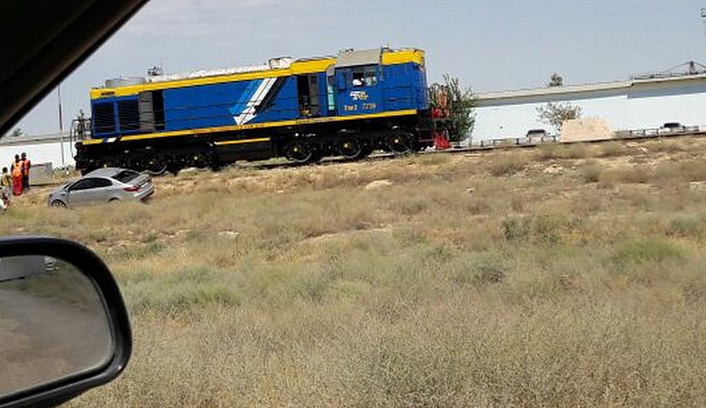 столкнулся с автомобилем в пригороде Актау. Происшествие случилось примерно в 01:25 в ночь на 12 августа. По словам очевидцев, столкновение произошло на Т-образном перекрёстке по дороге в морпорт. Водитель автомобиля, по предварительным данным, не увидел и не услышал тепловоз.