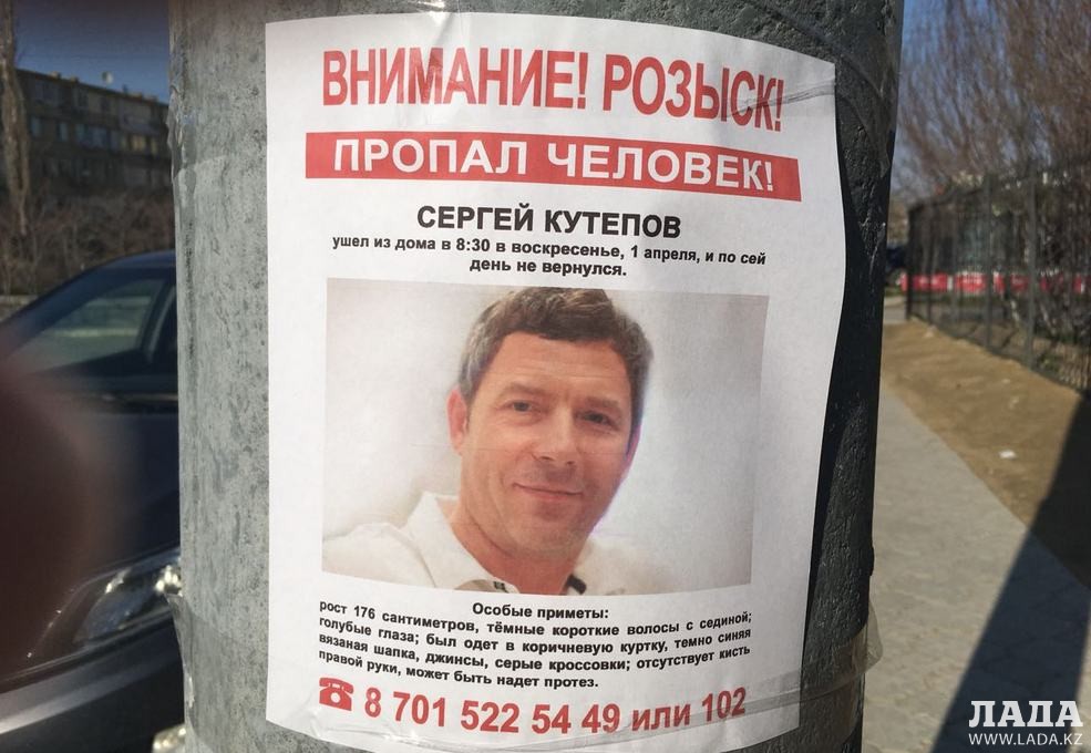 Информацию о возможном месте нахождения Сергея Кутепова родственники просят сообщить по телефонам: 8 701 522 54 49 или 102.