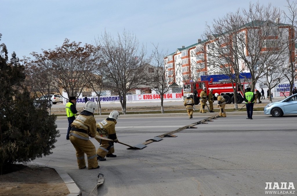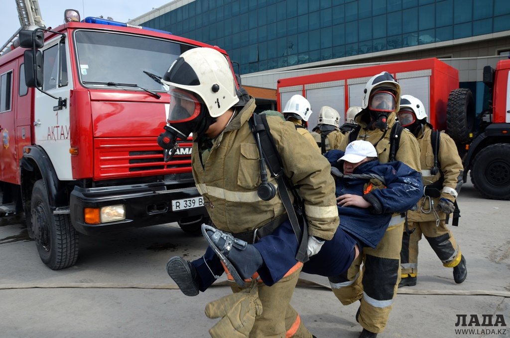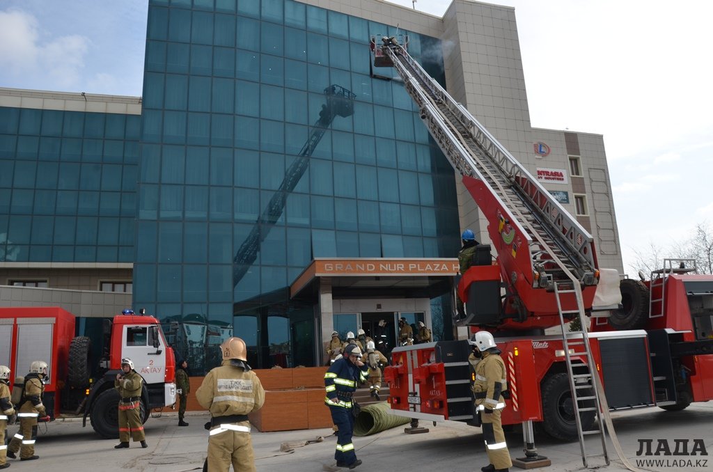 В рамках празднования 1 марта - Международного дня гражданской защиты - сотрудники службы пожаротушения и аварийно-спасательных работ ДЧС Мангистауской области провели пожарно-тактическое учение на территории гостиницы «Нур Плаза».