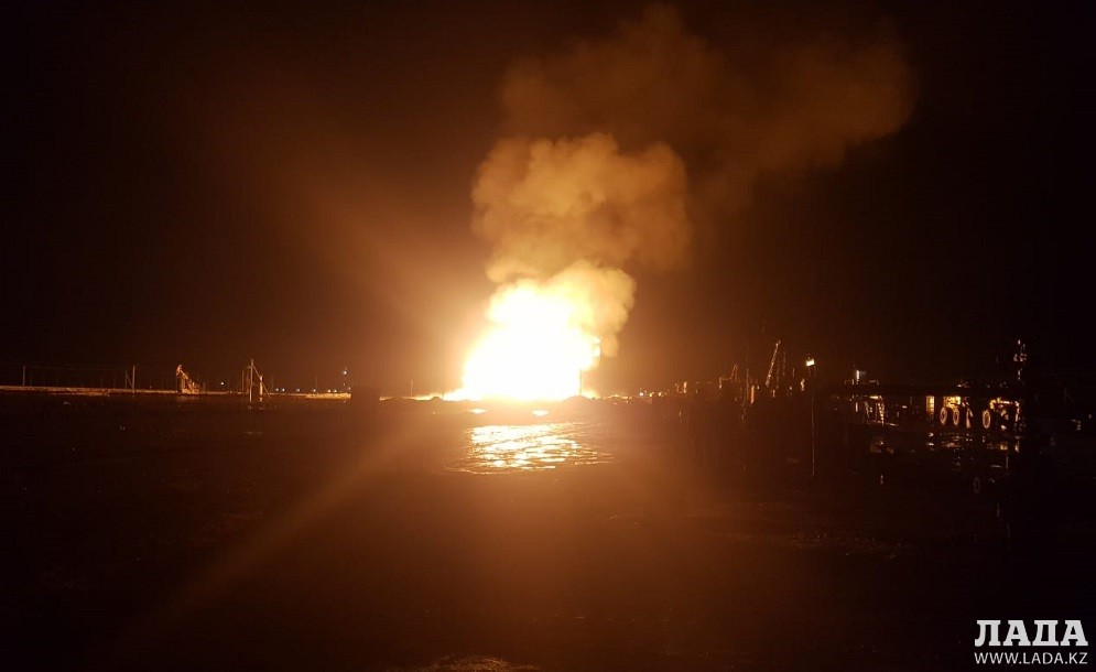 Возгорание на месторождении Каламкас сняли на видео очевидцы.