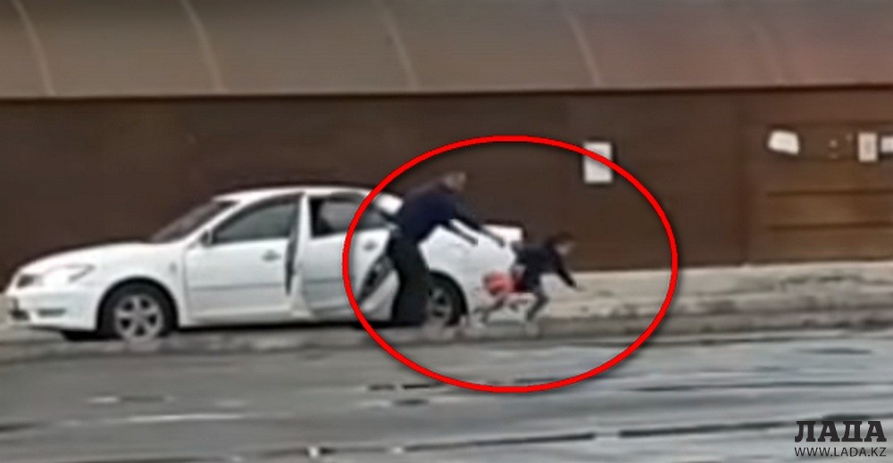 На кадрах ролика видно, как маленькую девочку мужчина швыряет на землю. Ребенок падает, слышен плач. Затем девочка поднимается и идет к другому автомобилю.