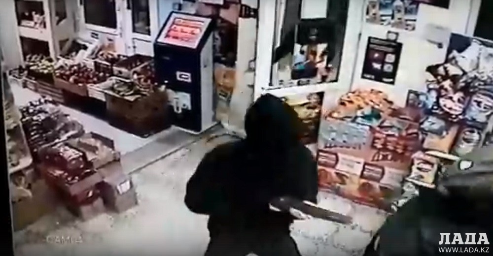 На кадрах ролика видно, как неизвестные лица в масках и капюшонах, с оружием в руках похищают денежные средства из кассы магазина.