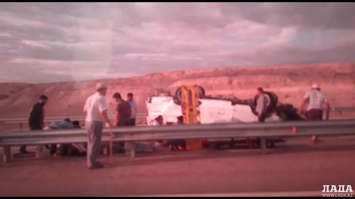 В Мангистауской области в результате столкновения двух автомобилей один из них перевернулся.
