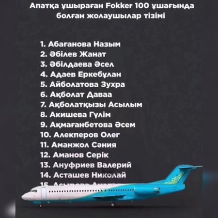 - В тот день много людей ждали родственников, друзей и подруг в Нур-Султане. Никто не знал, что случится то, что случилось. До сих пор не осознаю, что всё это произошло со мной. Отец волновался за меня, так как это был мой первый полёт. Я позвонила ему перед вылетом, сказала, что скоро прибуду на место назначения. В самом начале полёта раздался непонятный звук. Никто поначалу не придал значения этому. Как только судно набрало небольшую высоту, самолёт накренился в правую сторону, и будто бы поднялся пару раз, и упал окончательно. Вся жизнь в эти 10-15 секунд пролетела перед глазами. Только что все смеялись, разговаривали, и раз — всё сменилось плачем и криками, - рассказала девушка.