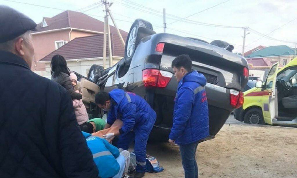 В Актау на автодороге в 30 микрорайоне произошла авария, в результате которой перевернулся автомобиль марки Тоуота Land Cruiser 200.