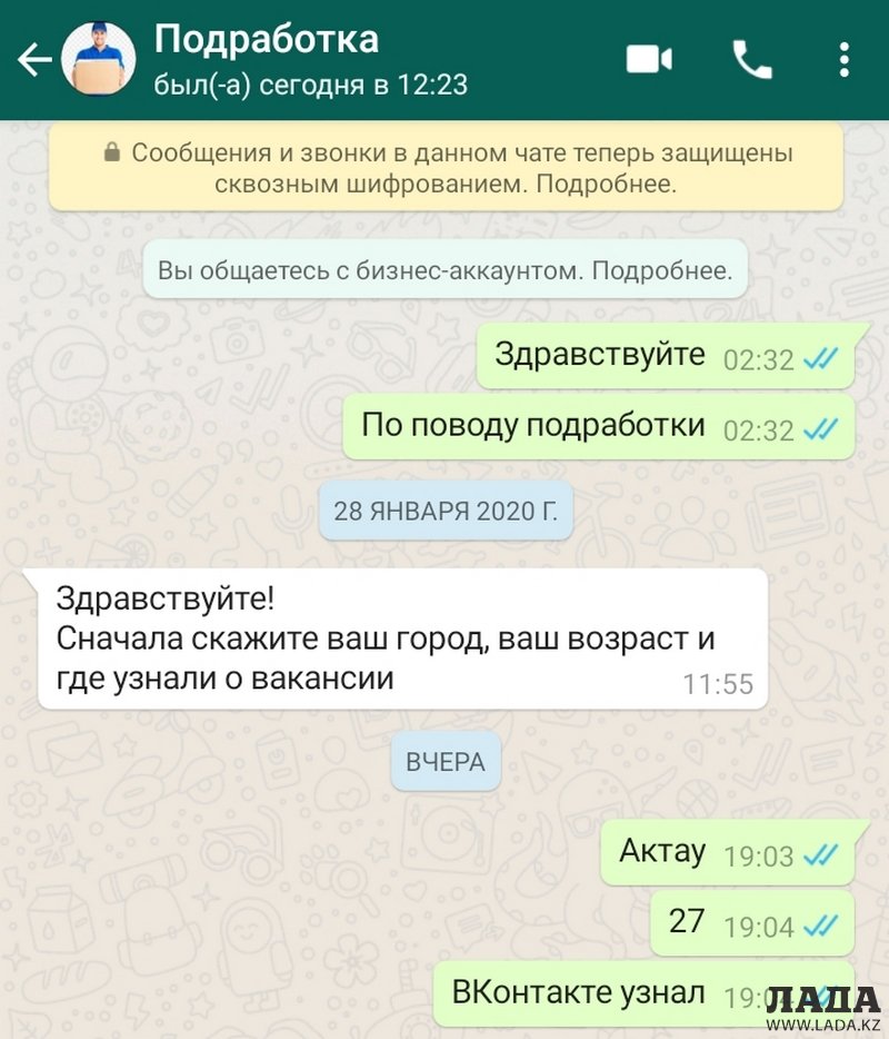 По словам молодых людей, в социальной сети Вконтакте к ним поступили сообщения о трудоустройстве с незнакомых аккаунтов. По дальнейшим вопросам предложили связаться в WhatsApp.