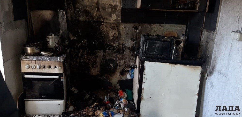 Из-за возгорания расплавились микроволновая печь и холодильник.