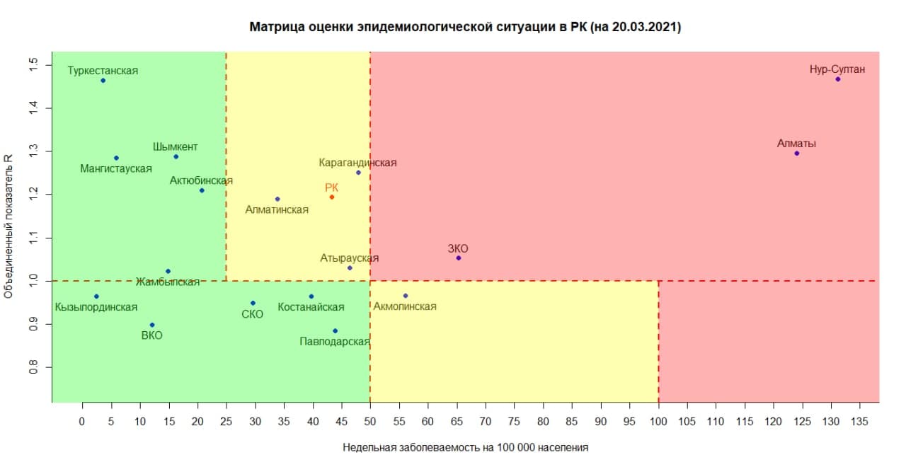 Отметим, что согласно матрице оценки эпидемиологический ситуации в регионах Казахстана, Мангистауская область находится в «зеленой» зоне по коронавирусу.