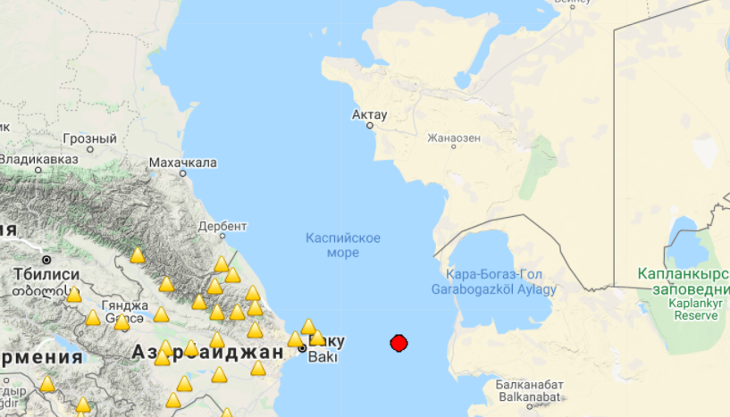 На глубине 25 километров в Каспийском море зафиксировали подземные толчки магнитудой 3,5 балла.