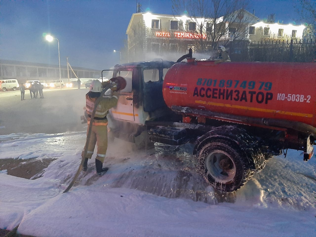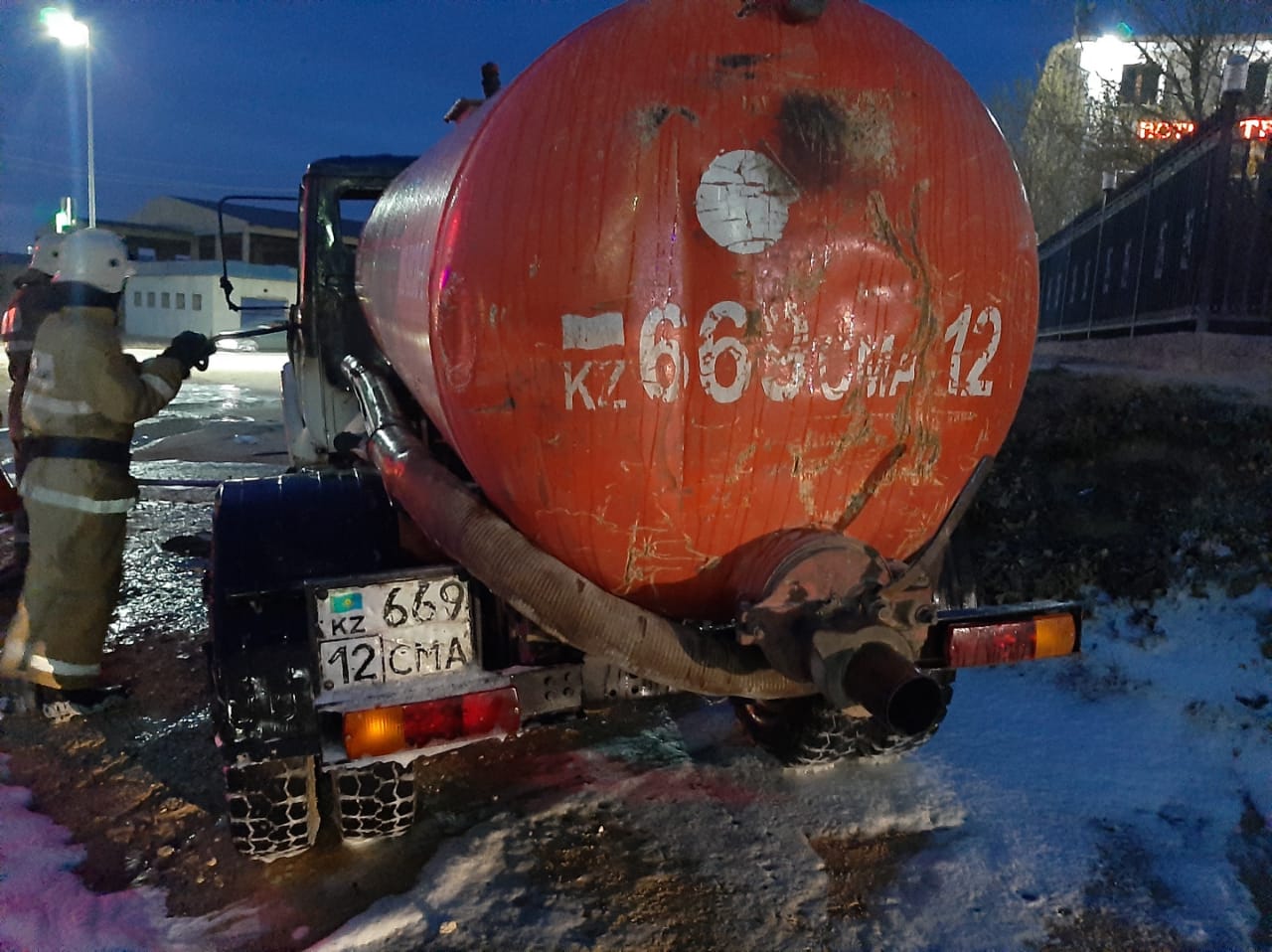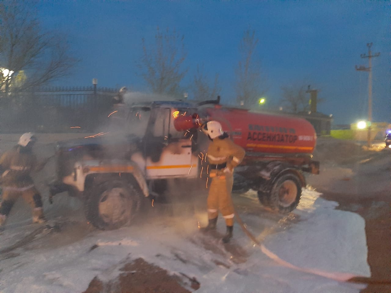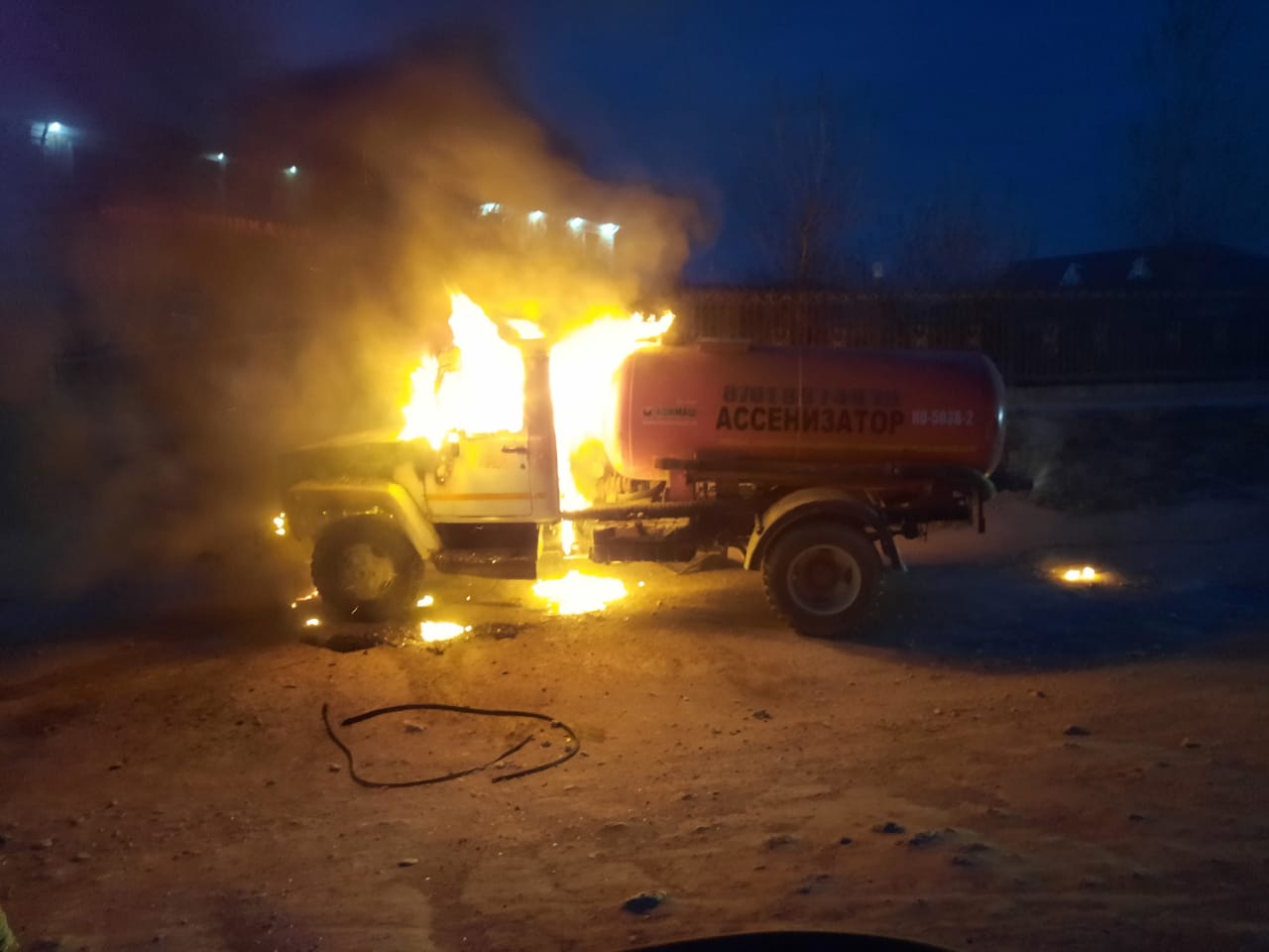 Возгорание ассенизатора «ГАЗ-53» произошло вчера, 12 апреля, в 21:26 в микрорайоне «Мамыр» в Жанаозене.