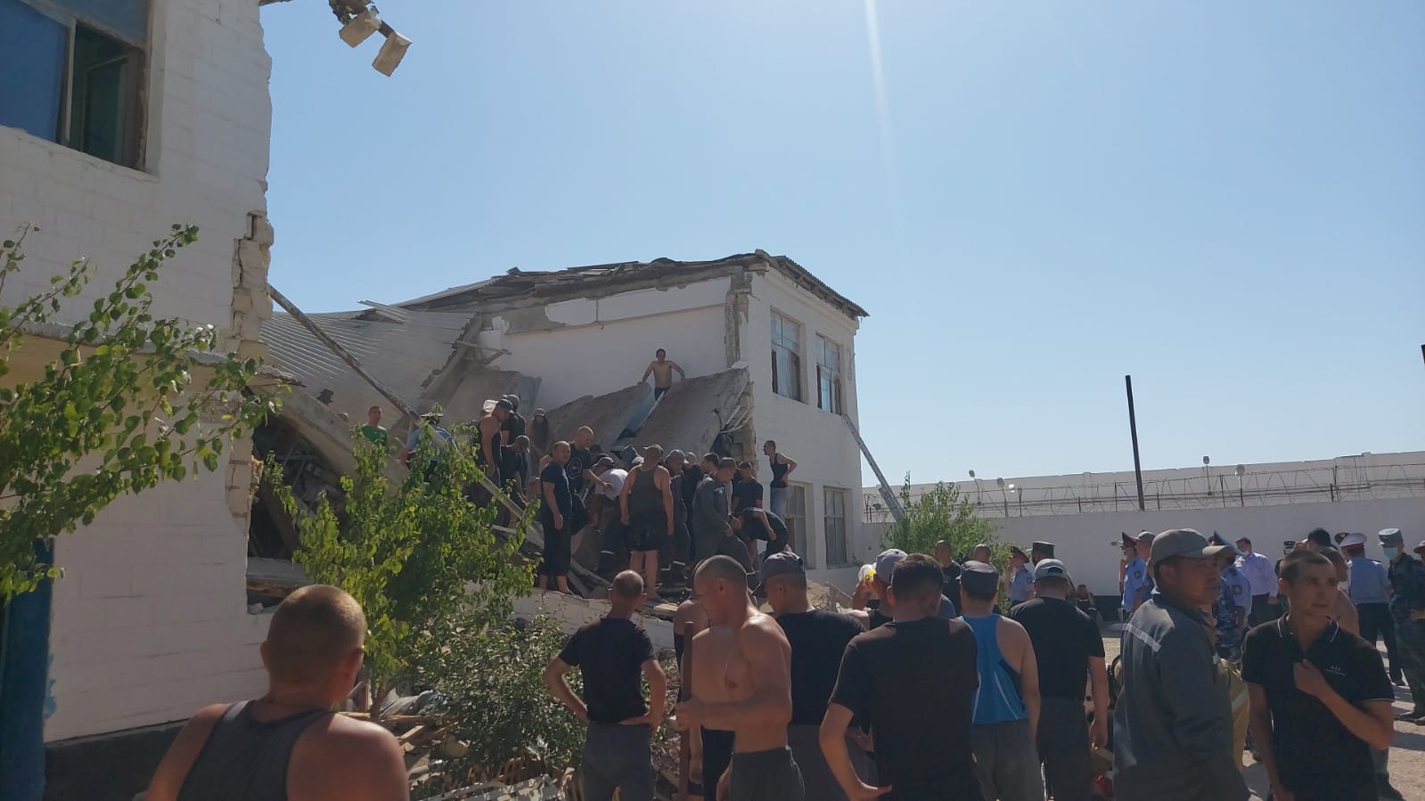 Очевидцы опубликовали в Сети фотографии из колонии в Актау, где вчера частично обрушилось общежитие.