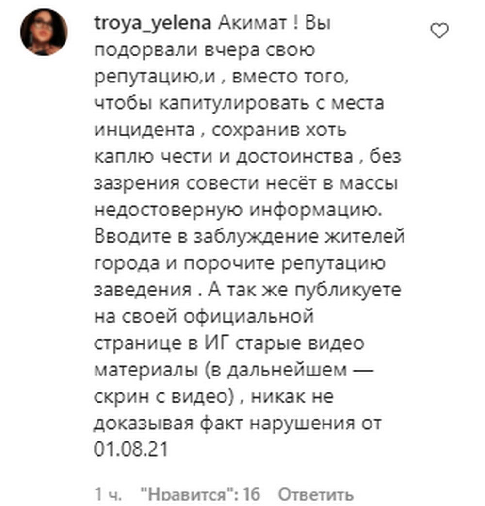В социальных сетях пользователи пишут, что чиновники вводят в заблуждение горожан и порочат репутацию заведения. Концерта, по их словам, не было. При этом сам исполнитель «Шиза» опубликовал в Instagram Stories об отмене концерта.