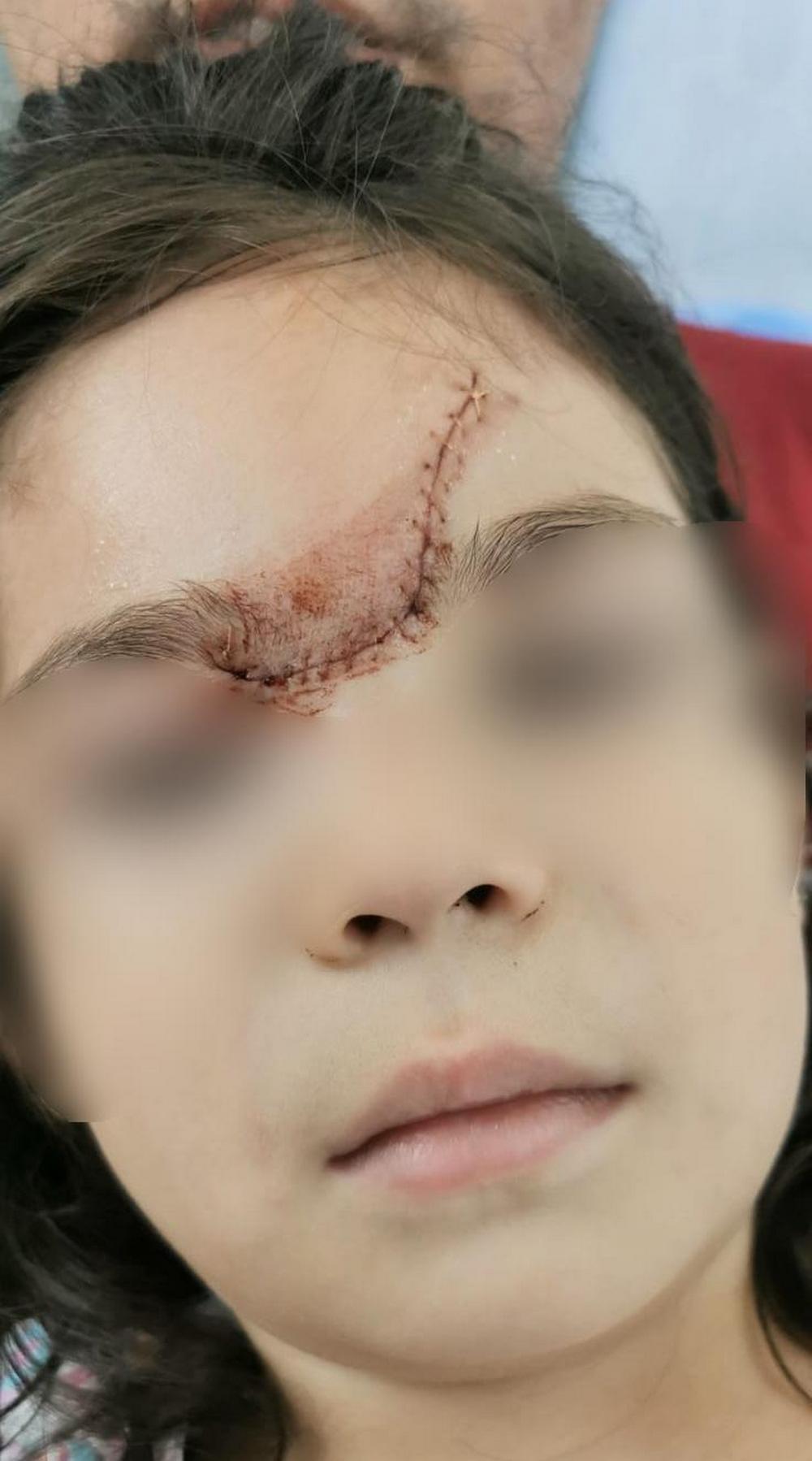 Родители девочки сразу же отправились в больницу, где врач наложил ребёнку 15 швов. У неё была глубокая рана и деформация переносицы.