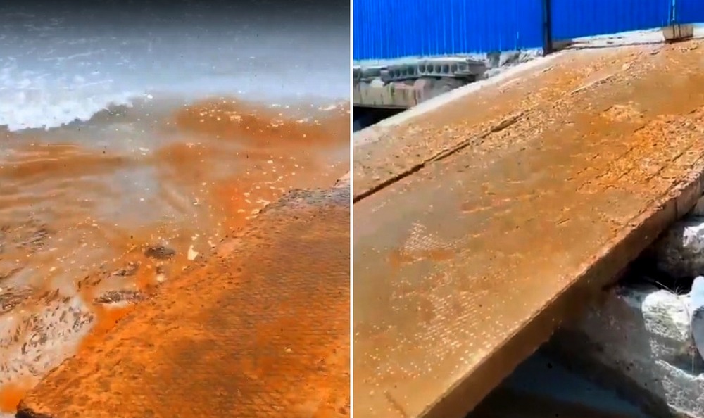 рассказала, что уже не первый раз наблюдает, как у водно-спасательной станции по бетонной плите в море стекает непонятная жидкость оранжевого цвета со ржавым оттенком.