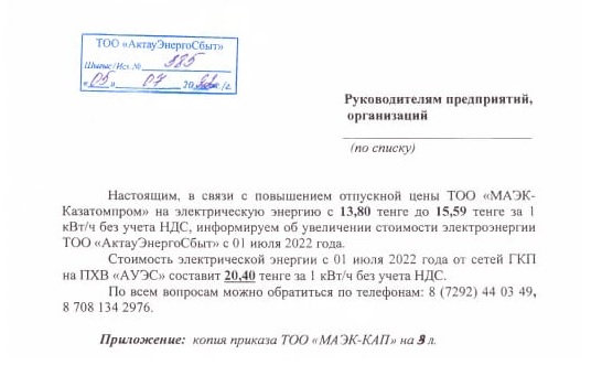 Поэтому мы обратились за комментарием в ТОО «Маңғыстау Жарық», где нас заверили о том, что увеличение тарифов на электроэнергию до конца лета не ожидается.