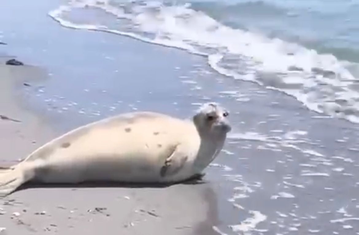 Жителям Актау удалось запечатлеть на видео, как тюлень выплыл из Каспийского моря, немного порезвился на песке, а затем лёг на побережье. На солнце тюлень грелся около 40 минут. Чуть позже эндемик Каспия вернулся обратно в воду.