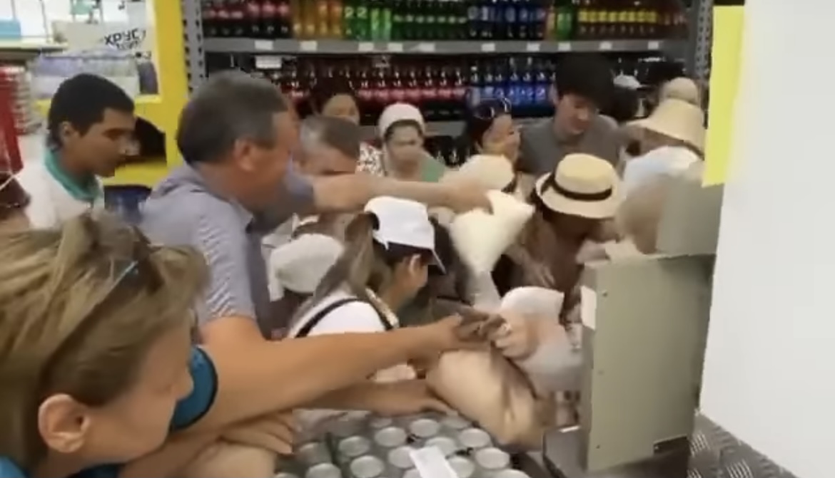 Давка в супермаркете из-за сахара попала на видео в Актау. Местный блогер Азамат Сарсенбаев опубликовал в Сети видео, на котором люди пытались заполучить товар, ставший дефицитом в последнее время.