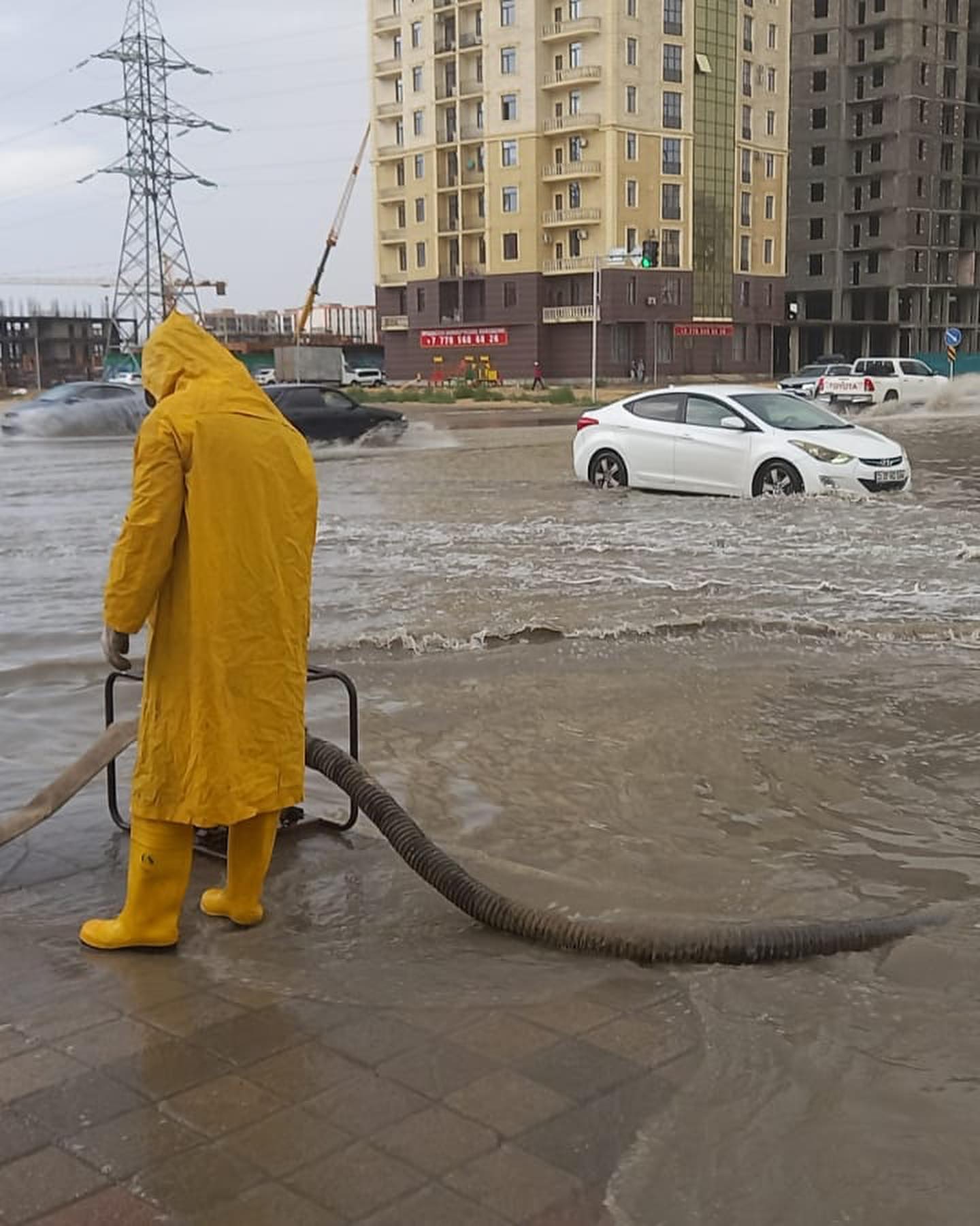 В Актау проливные дожди стали причиной подтопления нескольких улиц и районов города.
