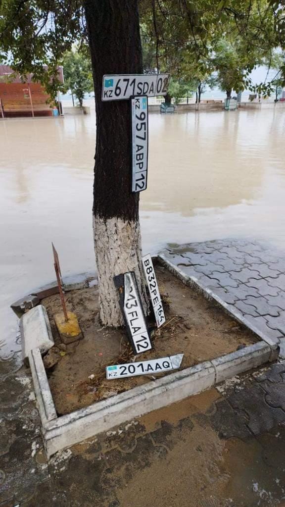 Житель Актау прислал фото находок со смытыми ливнем автомобильными номерами.