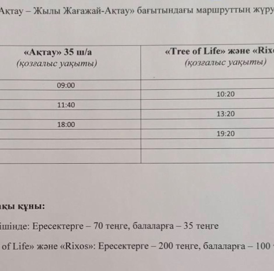 Проезд внутри города составляет 70 тенге, до «Тёплого пляжа» - 200 тенге.