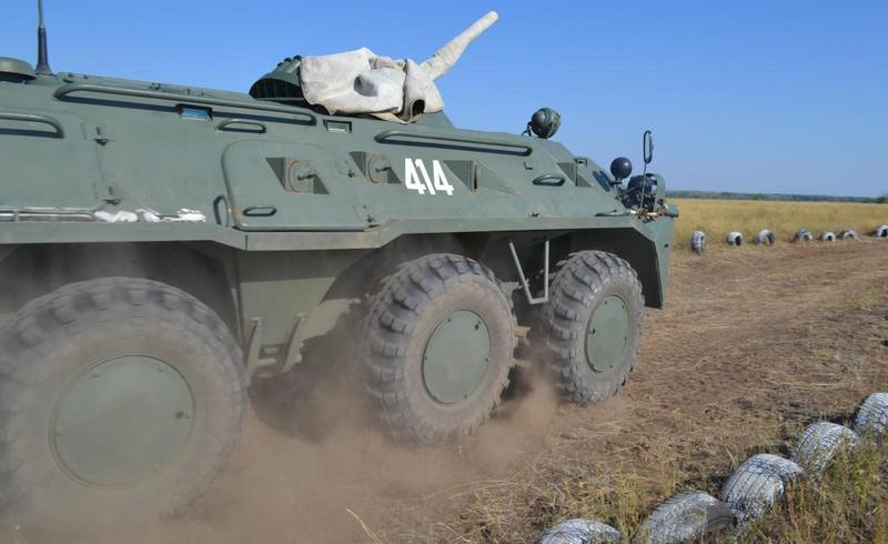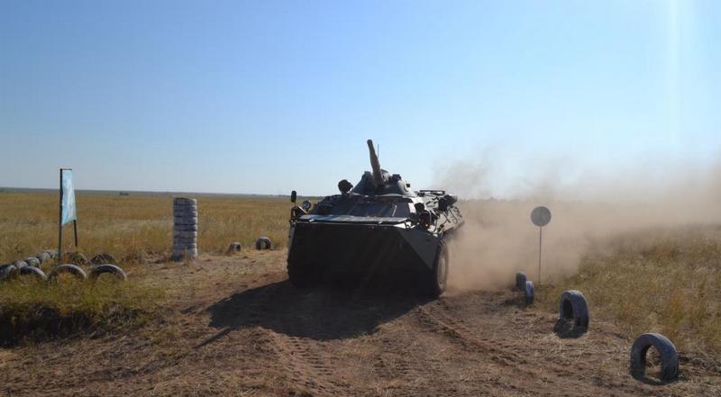 Экипажам БТР необходимо было проехать маршрут с препятствиями. Кроме этого, военнослужащие должны были проявить и меткость - поразить все мишени.