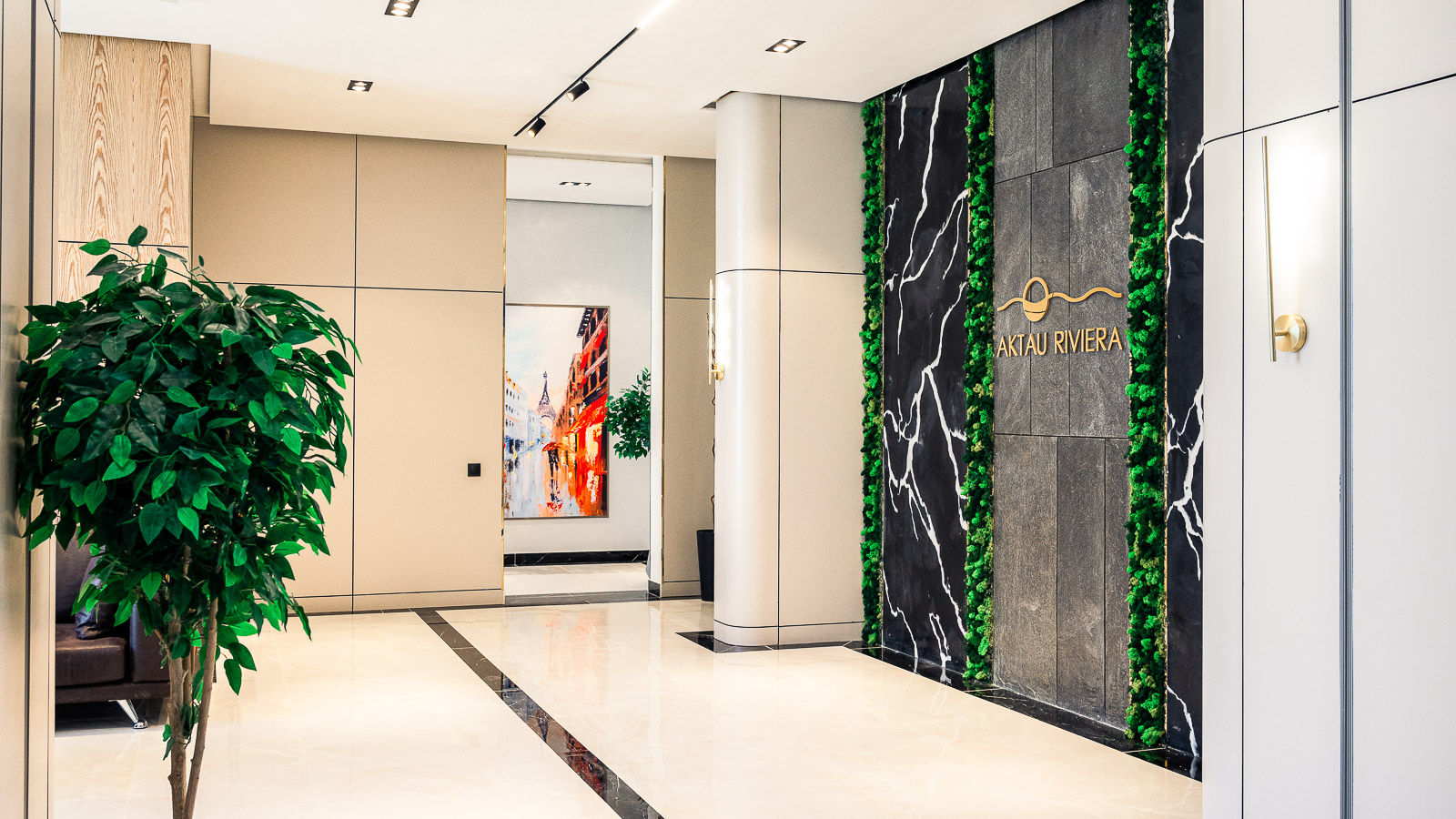 Проект строительной компании BI Group состоит из 2 очередей апартаментов и вилл. Современный взгляд на проектировку позволит жителям иметь прямой выход к морю и песочный пляж. Территория Aktau Riviera начинается с первой береговой линии и простирается практически до заповедной зоны. Всего несколько минут ходьбы разделяют жителей виллы до морской глади. Жители вилл смогут наслаждаться отдыхом на открытых террасах, откуда открывается фантастический вид на необъятный Каспий. А витражное остекление в апартаментах только приумножит красоту пейзажа.