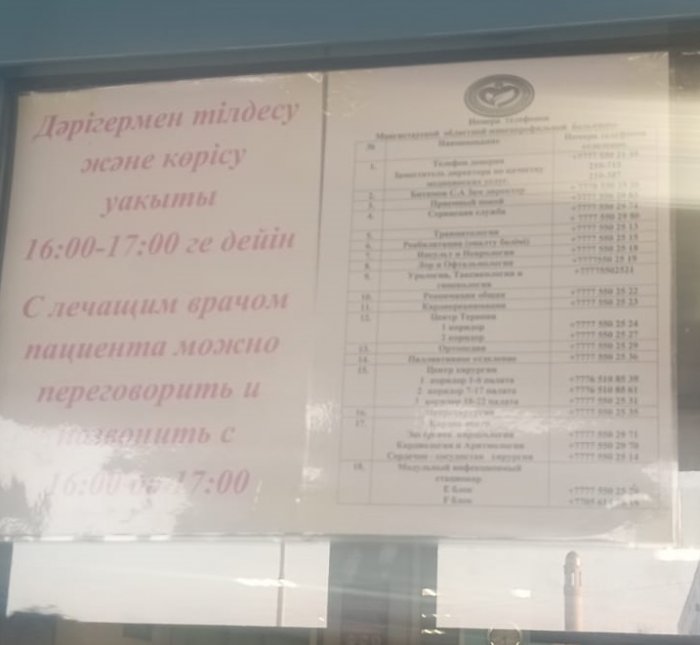 - При посещении своих родных, которые лежат в больнице, нам приходится сталкиваться с бардаком и выстаивать очередь. Каждый день в часы приема там столпотворение, приходится ругаться с охранником больницы, он хамит и не пускает людей. По телефону также не дают информацию о больных пациентах, - пожаловалась жительница Актау.
