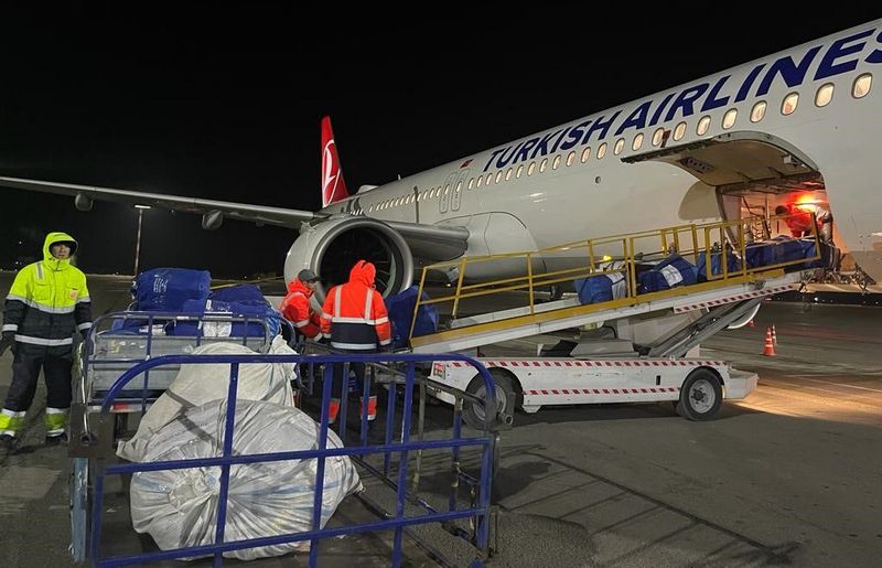 Первый поток гуманитарной помощи был направлен 11 февраля в 07:40 по маршруту Актау-Стамбул авиакомпанией «Turkish Airlines».
