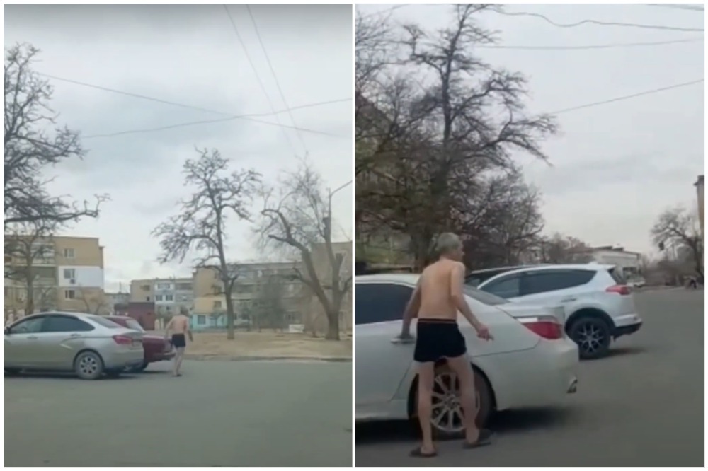 Жители Актау сняли на видео мужчину практически без одежды. На кадрах видно, как «герой» в трусах подбегает к разным припаркованным автомобилям и пытается их открыть.