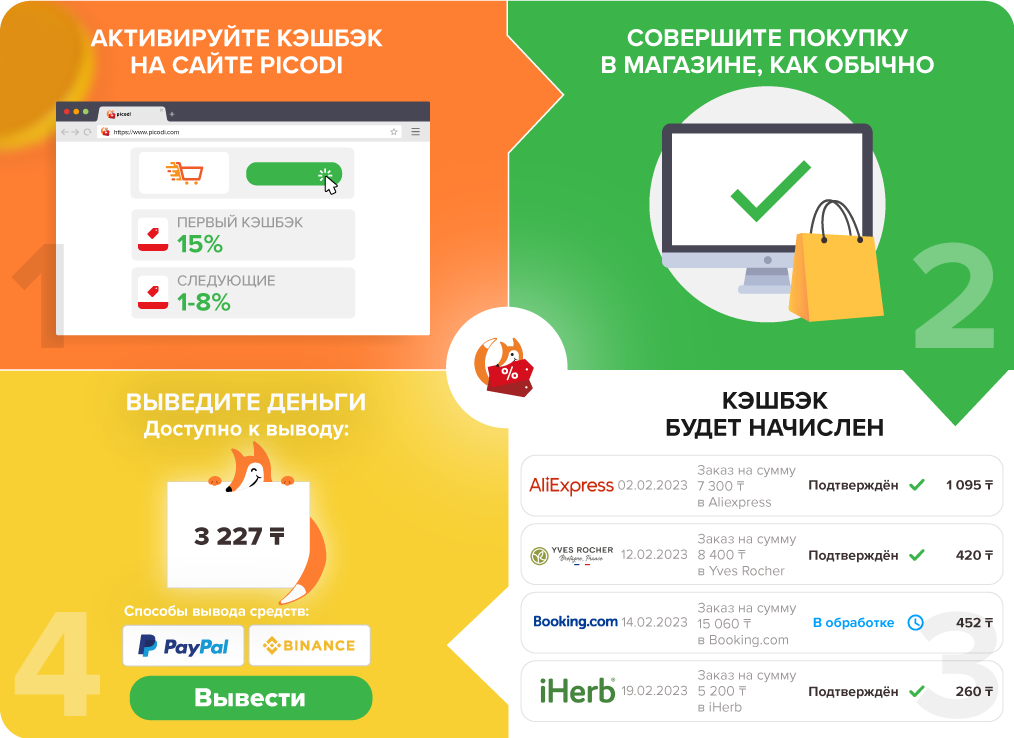 Не бойтесь начать, даже если смысл сервиса вам пока не понятен. У Picodi все просто и доступно, есть ответы на часто возникающие вопросы, а до конечного результата вас буквально доведут за ручку. Заработанное на покупках можно вывести на PayPal или Binance. Не тратьте время попусту,