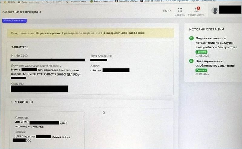 Первое в стране заявление о применении процедуры внесудебного банкротства одобрено жителю Актау.