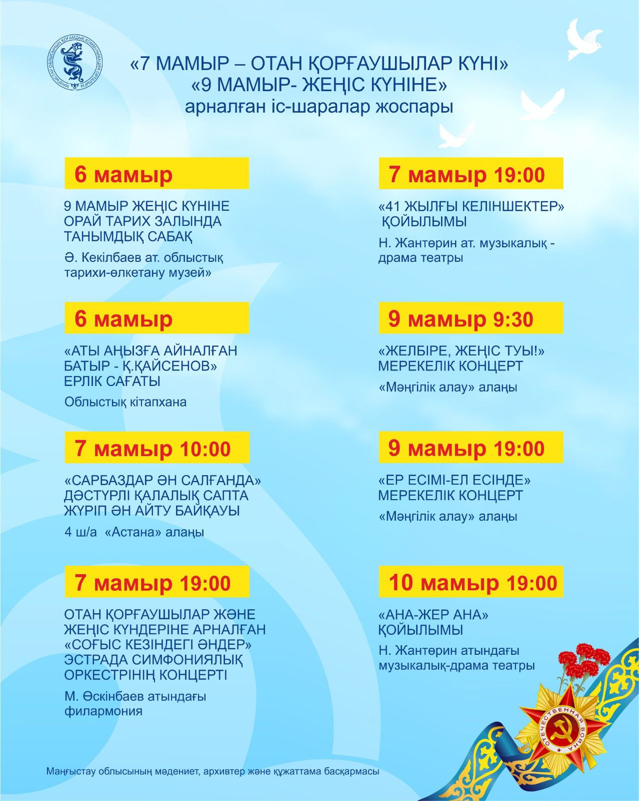 «Уважаемые ветераны ВОВ, труженики тыла, дорогие мангистаусцы! От всей души поздравляю вас с праздником 9 Мая - Днем Победы! Минуло уже 78 лет с момента окончания Великой Отечественной войны. 9 Мая навсегда останется священным днём для всех, кто помнит и гордится своими предками. Это день воспоминаний о прошлом и надежд на будущее, день радости и скорби, день, который мы должны помнить ради памяти тех, кто не смог увидеть его своими глазами.