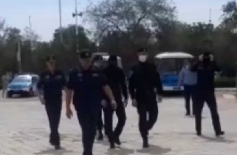 - К акимату Жанаозена подогнали полицейских и СОБР, по словам автора видео, силовики собираются задержать участников акции - безработных. Безработные жители Жанаозена почти два месяца пикетируют акимат города, требуют дать работу. Сегодня власти решили задержать безработных. Люди просят поддержки, - говорится в подписи к видео.
