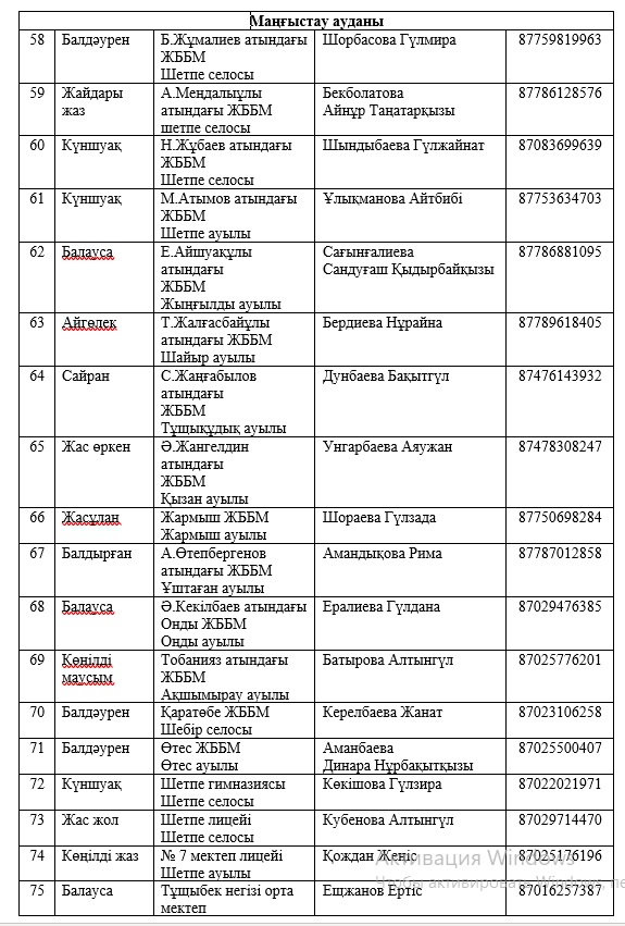 Летом в Мангистау будут работать три загородных лагеря:1. Лагерь «Балдаурен», расположен на побережье моря в 43 км от Актау. Телефон для справок: 87014582673 Есенгалиева Гулжахан Есенкосовна.
