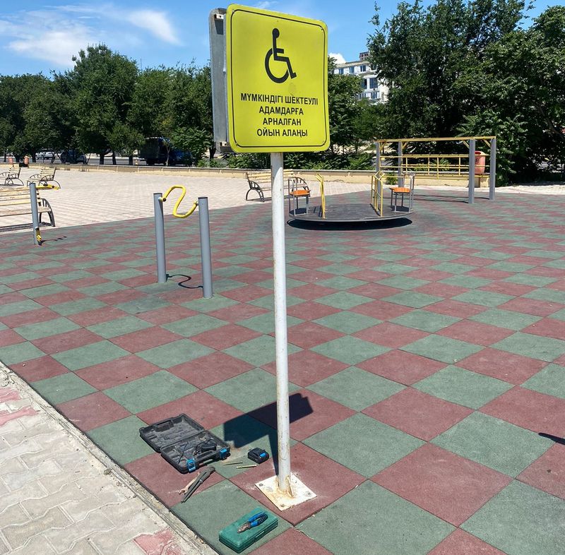 Жители Актау возмущены действиями вандалов, которые позарились на металлическую стойку со знаком на площадке для людей с ограниченными возможностями.