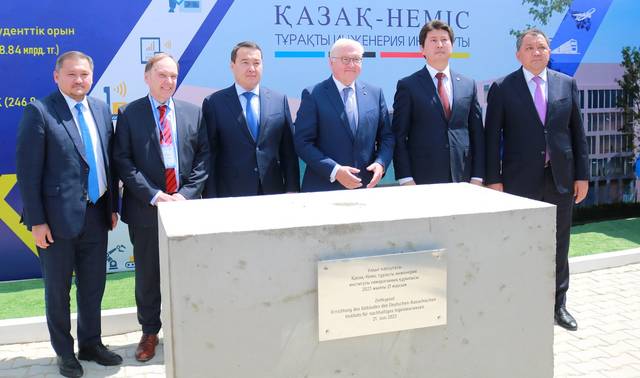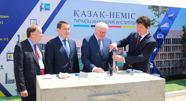 Президент Федеративной Республики Германия Франк-Вальтер Штайнмайер и премьер-министр РК Алихан Смаилов приняли участие в церемонии закладки капсулы на строительство здания казахско-немецкого института устойчивой инженерии на базе Каспийского университета технологий и инжиниринга имени Ш.Есенова (Yessenov University) в Актау.