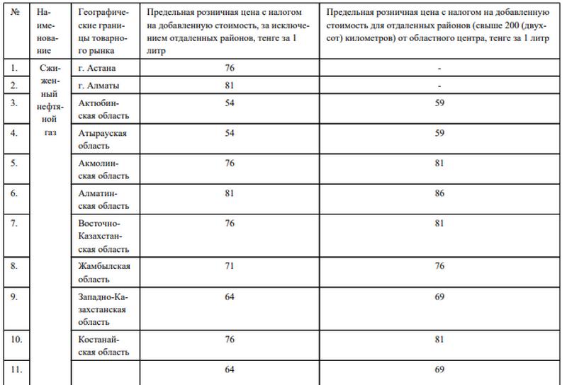 Предельная розничная цена с налогом на добавленную стоимость для отдалённых районов (свыше 200 километров) от областного центра, составит 59 тенге за литр.