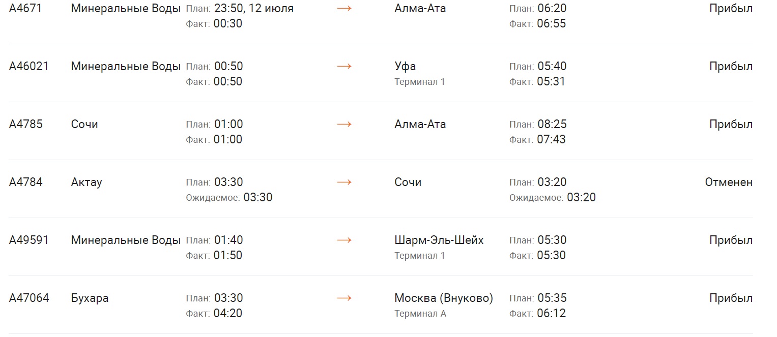 Онлайн-табло на сайте авиакомпании показывает, что на сегодняшний день перевозчик уже выполнил два рейса по направлениям Сочи-Алматы и Алматы-Сочи.