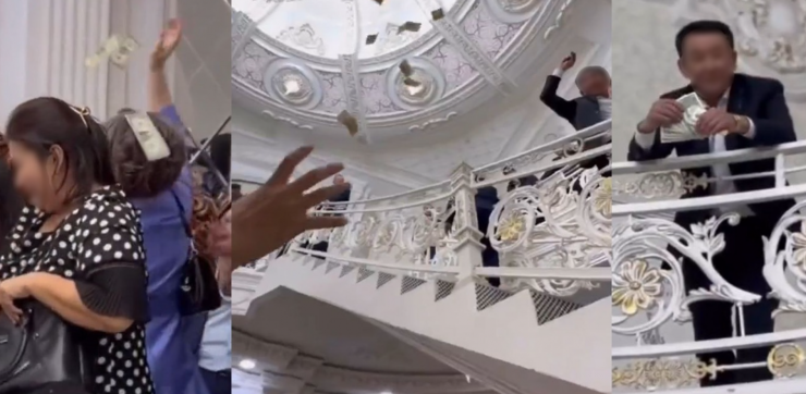 Tengri Life, видно, как присутствующие с радостью подбирают банкноты. Судя по надписи на видео, эпизод был заснят на одной из свадеб в Мангистауской области.