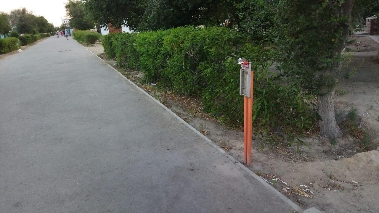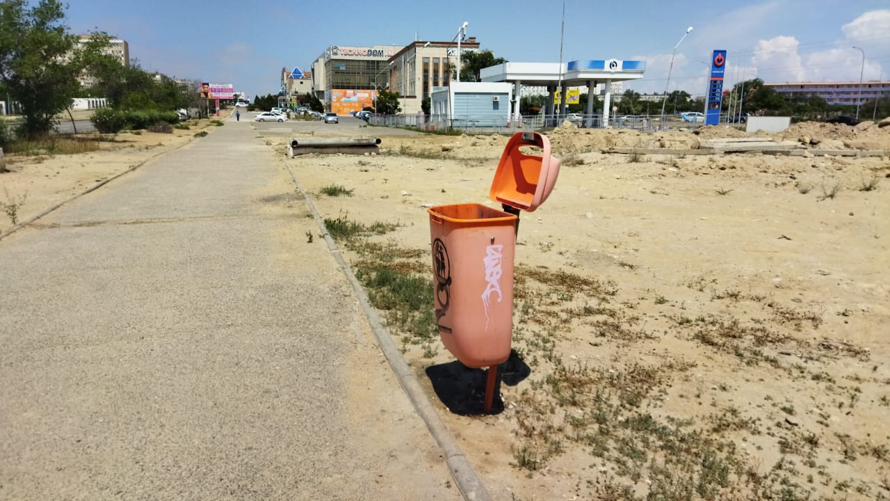 На улицах Актау, по словам местных жителей, многие из пластиковых урн оказались повреждены.