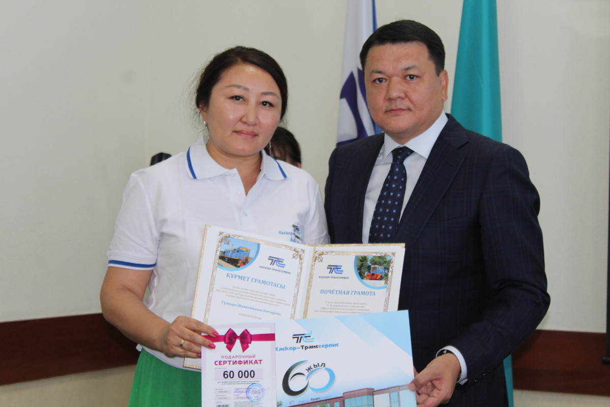 В честь празднования 60-летия компании и профессионального праздника «День работника транспорта», за достойный трудовой вклад в становление и развитие предприятия, а также высокую производственную и трудовую дисциплину, отличившихся работников наградили благодарственными письмами Министерства индустрии и инфраструктурного развития РК, акимов города и области. Отдельно хочу выделить нашего сотрдуника – Кульжанова Жолдаскали Актажиевича – он был удостоен награды «Почетный железнодорожник» Министерства индустрии и инфраструктурного развития РК.