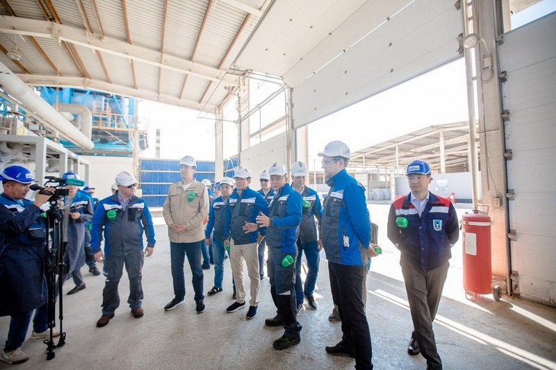 Председатель правления АО «Самрук-Қазына» Нурлан Жакупов и председатель правления АО НК «КазМунайГаз» Магзум Мирзагалиев в ходе рабочей поездки в наш регион посетили завод ТОО СП «Caspi Bitum».