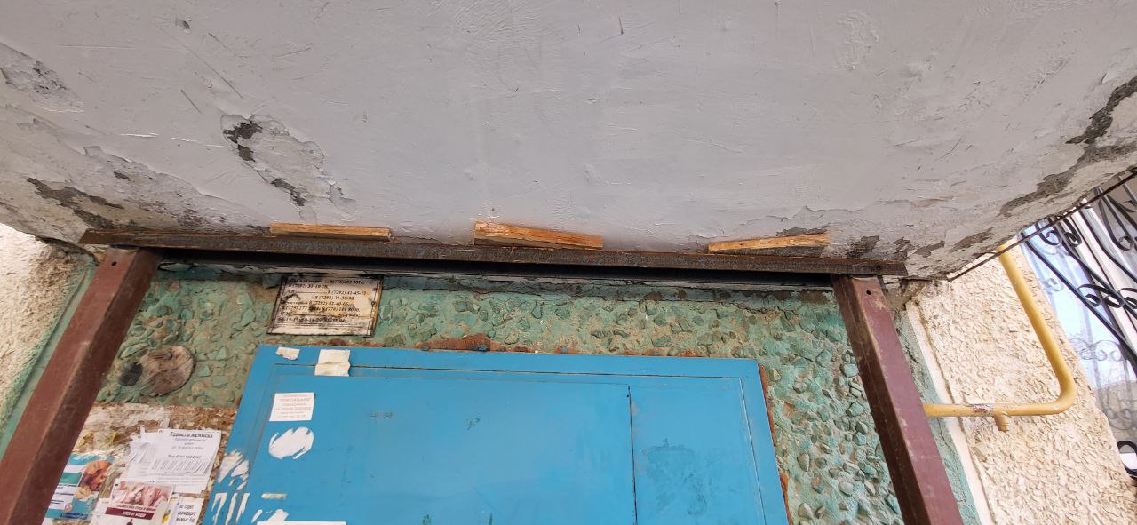 - Жильцы данного подъезда годами просят КСК «Татьяна» произвести замену козырька. И вот, что мы получаем по итогу, они установили железную конструкцию. Конструкция, которую они установили не то, что не спасёт ситуацию, она первая рухнет и прибьет кого-нибудь, а за ней и этот козырёк, который годами находится в аварийном состоянии. Козырёк несёт угрозу и вред жизни и здоровью жильцов, проживающих в данном подъезде. Необходимо срочно принять меры, - пожаловались жители дома.