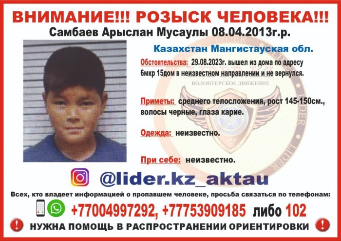 В настоящее время поисками мальчика занимаются добровольцы волонтёрского движения «Lider.kz» в Актау совместно с правоохранительными органами.