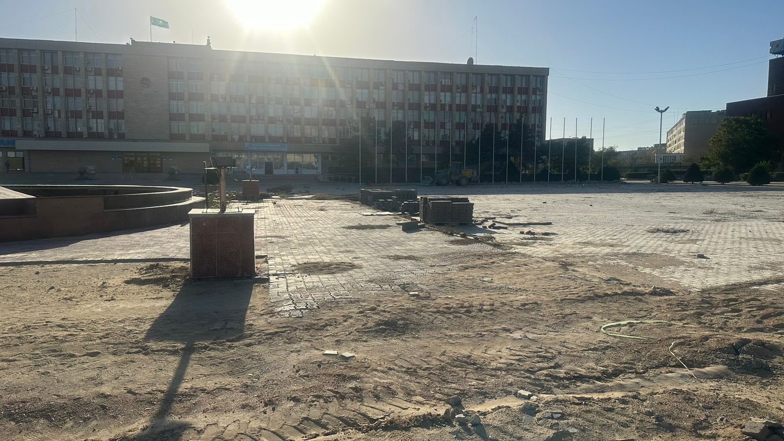 появлялось ограждение на площади перед зданием городского акимата. В городской администрации сообщили, что ведутся работы по благоустройству. Позже чиновники сообщили, что работы временно