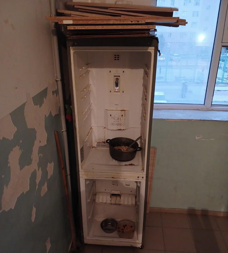 Три недели назад, как рассказали жители, женщина вынесла на площадку подъезда холодильник. Там она складирует пищу для своих питомцев. Поскольку холодильник нерабочий, от продуктов исходит смердящий запах.
